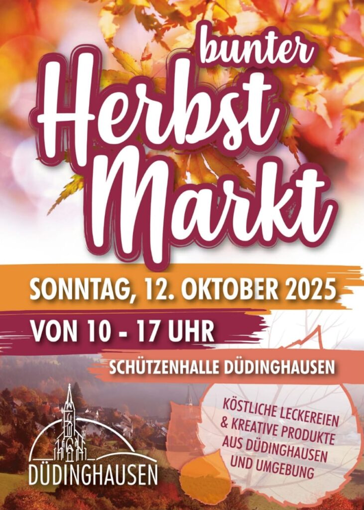 Genau so bunt wie die Jahreszeit, präsentiert sich auch der Herbstmarkt in Düdinghausen, zu dem der Ortsbeirat am Sonntag, den 12. Oktober einlädt. Um wetterunabhängig zu sein, findet das Marktgeschehen in der Schützenhalle statt.